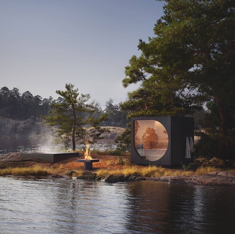 With wood heated stove the sauna heats to 80 celcius in one hour.